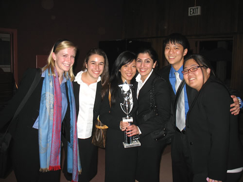Four days and eight rounds of regional competition spread across two cities produced the maximum number of national tournament bids that can be earned by any school for the USC Mock Trial Team. Four squads laden with primarily freshmen and sophomores competed in Fresno, CA and Rancho Cucamonga, CA and returned with coveted bids to the Amertican Mock Trial Association's national tournament opening rounds. Best squad records were 7-1 and 6-2. Chistine Sihn and Casey Wong earned "All-Region Witness" awards. Catherine Veeneman pulled-off another double and was the sole competitor at Rancho Cucamonga to earn both "All-Region Witness" and "All-Region Attorney" awards.